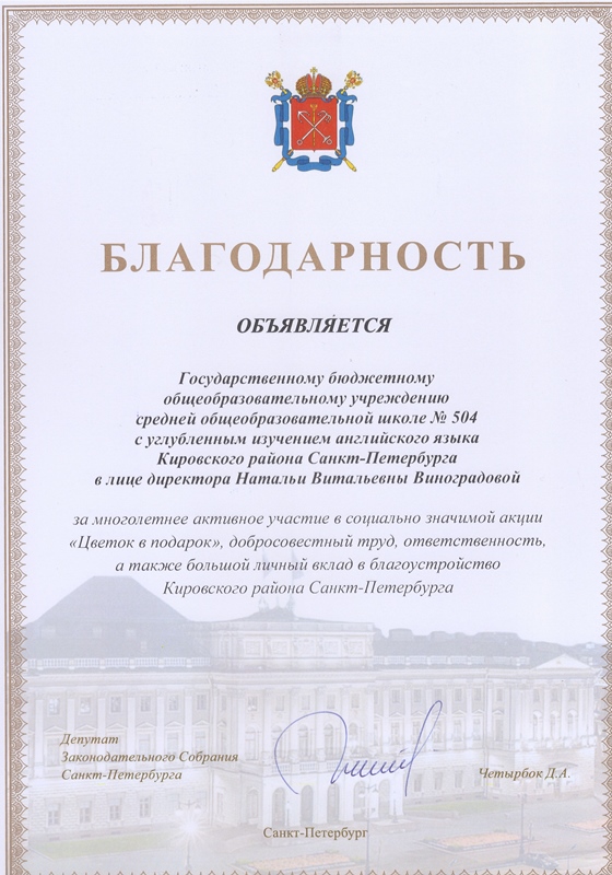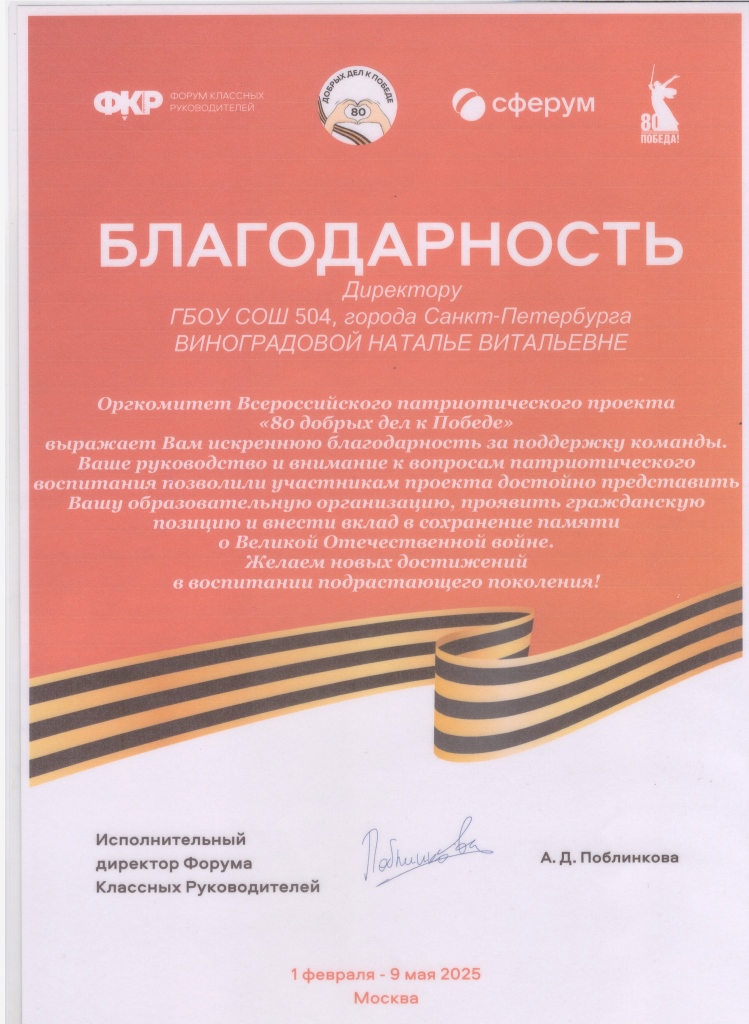 С уважением, директор школы № 504 Виноградова Наталья Витальевна